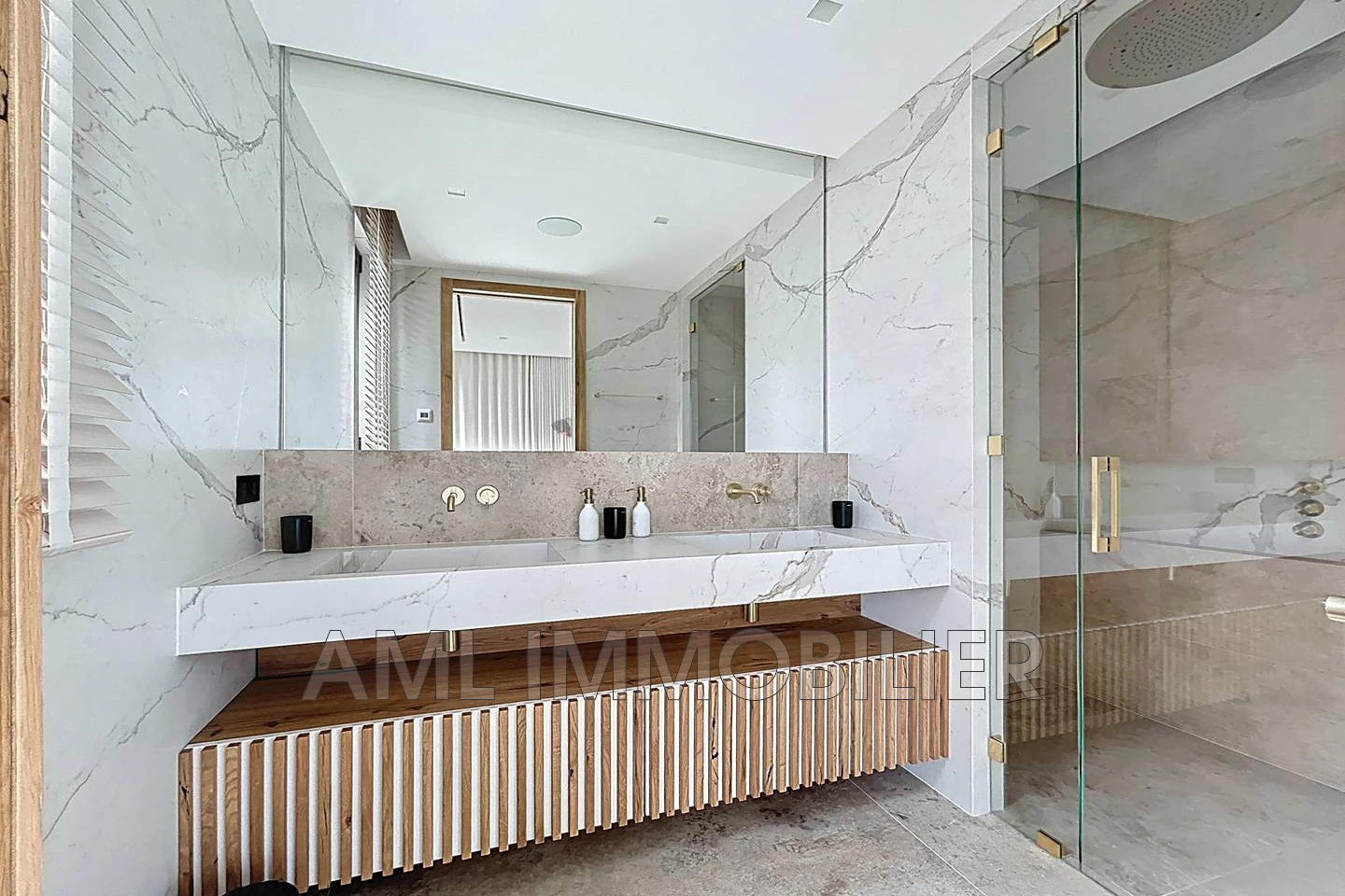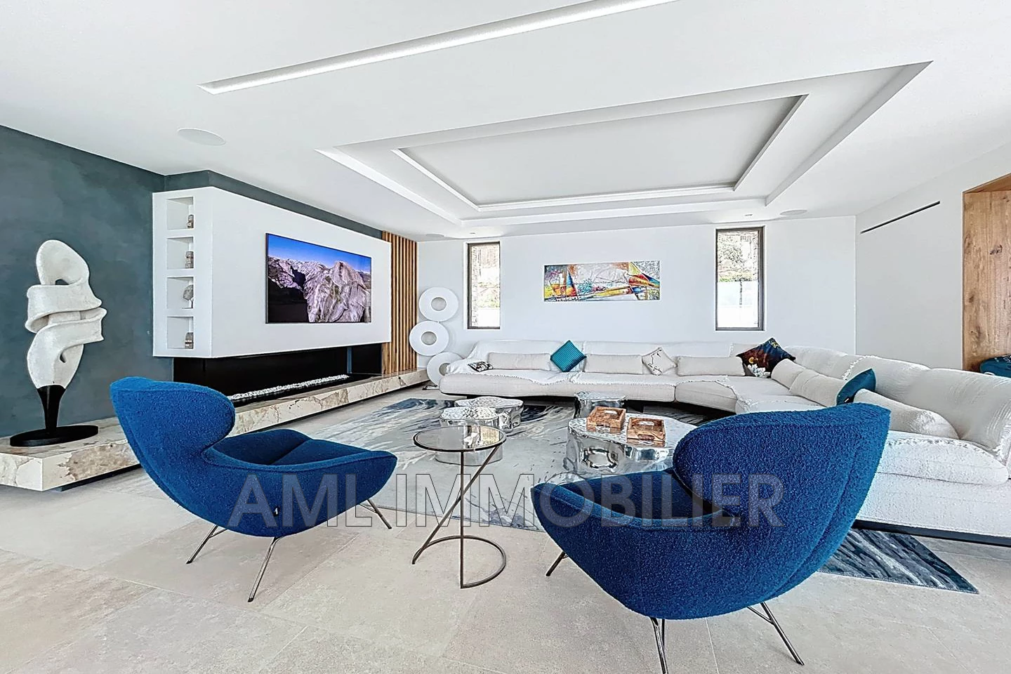 - 1 grande pièce de vie ouverte comprenant salon TV avec cheminée au gaz, salle à manger et cuisine (1 îlot à champagne/repas, 2 îlots plan de travail + technique, nombreux rangements, 2 frigos avec machine à glaçons, 2 fours, machine à café, 2 lave-vaisselles.
